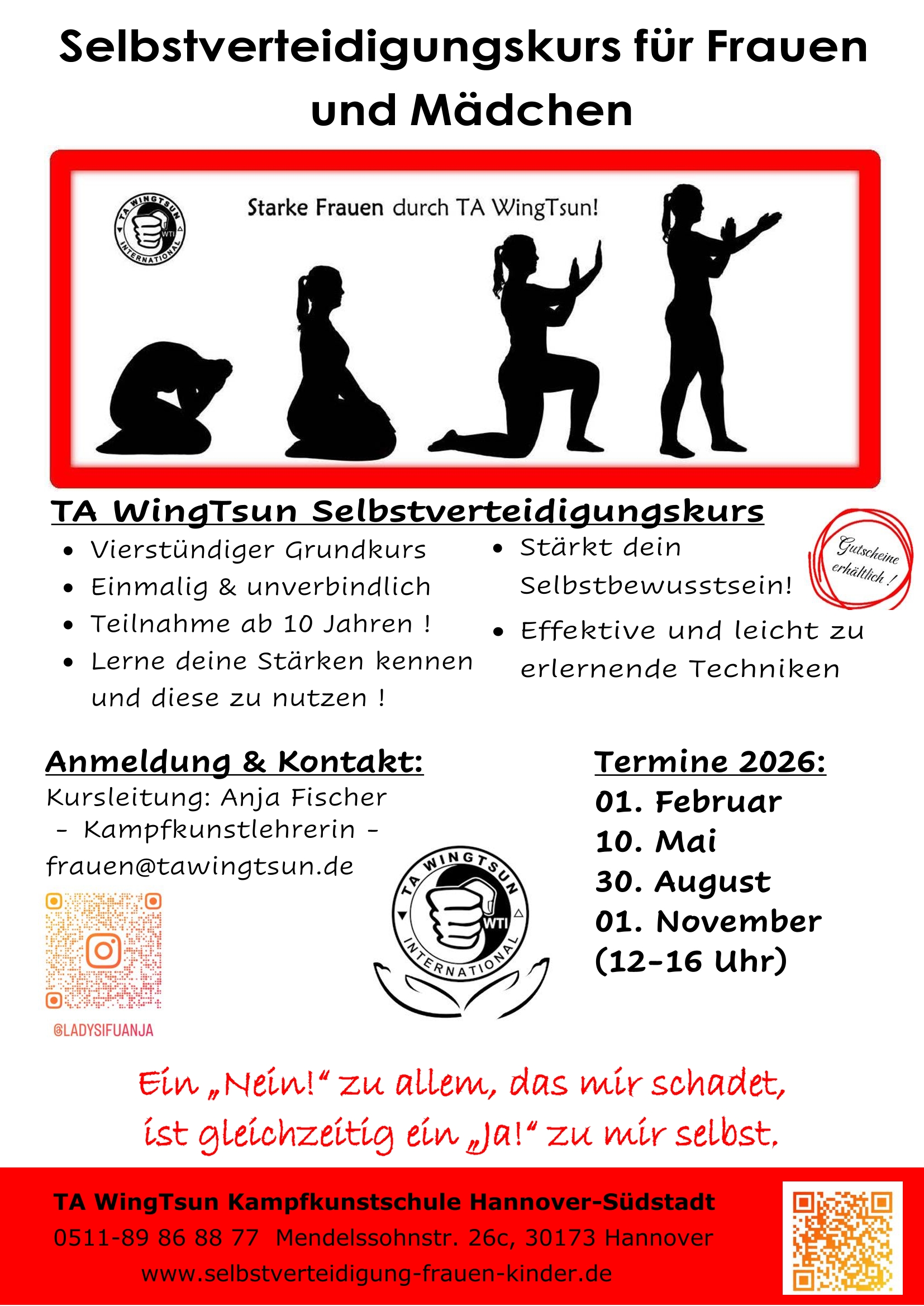 Anja Fischer unterrichtet Kinder, Jugendliche, sowie Erwachsene und hat sich im Laufe der Jahre auf Mädchen- und Frauen-Selbstverteidigung spezialisiert. Ihre Kurse haben sich bereits in ganz Deutschland herumgesprochen. Auch in den TA WingTsun-Kampfkunstschulen der Türkei ist Anja Fischer mittlerweile durch ihre fachspezifische Arbeit bekannt und gefragt.